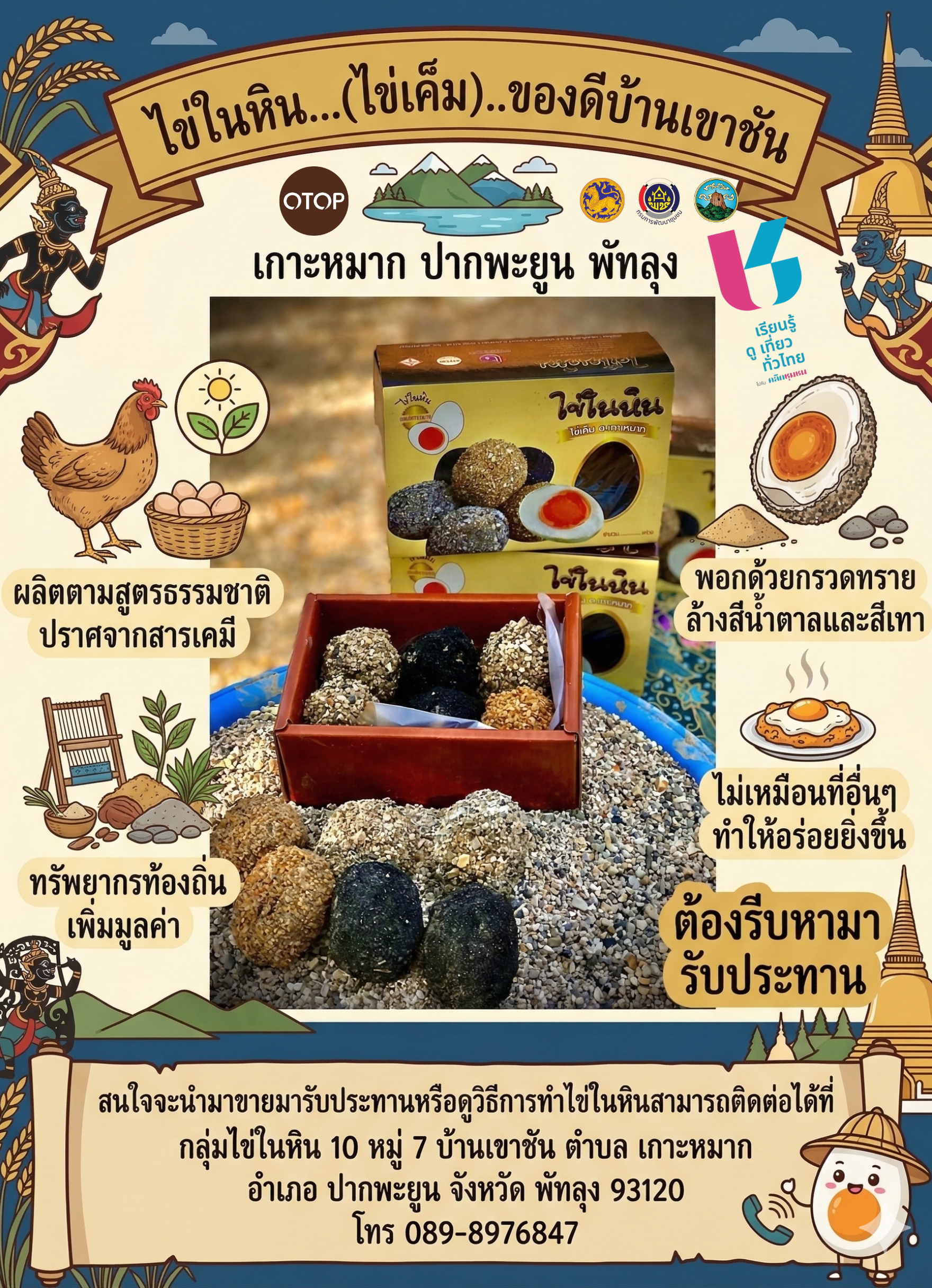 กลุ่มไข่ในหิน 10 หมู่ 7 บ้านเขาชัน ตำบล เกาะหมาก อำเภอ ปากพะยูน จังหวัด พัทลุง 93120