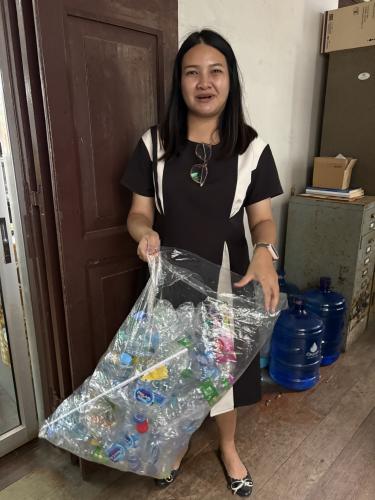 บุคลากรร่วมกันคัดแยกขวดพลาสติกก่อนทิ้งลงในถังขยะรีไซเคิลที่จัดเตรียมไว้ เพื่อลดปริมาณขยะมูลฝอยในหน่วยงานอย่างเป็นรูปธรรม ควบคู่กับการรักษาสภาพแวดล้อมการทำงานให้เป็นระเบียบเรียบร้อยตามหลัก 5ส มุ่งสร้างจิตสำนึกและความรับผิดชอบต่อสิ่งแวดล้อม